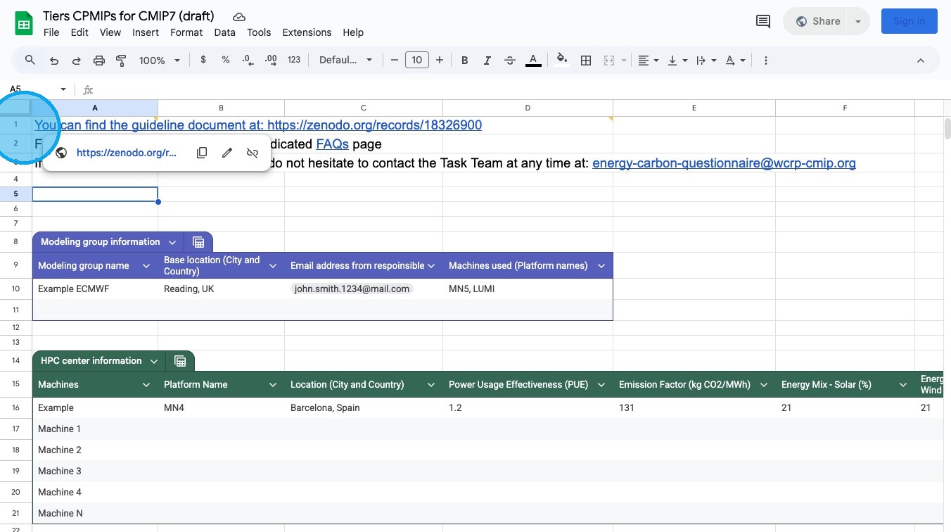 The Zenodo link provides: - Tier 1–3 metric definitions - calculation methods - PUE and emission factor explanations - best practices